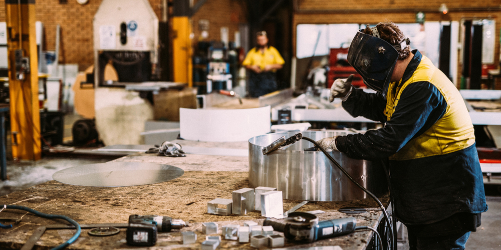 De productie vindt plaats in een moderne, goed verlichte werkplaats met vloerverwarming, zodat je geen last hebt van koude voeten in de winter. Het materiaal dat wordt gebruikt is voornamelijk aluminium (85%) en roestvrij staal (15%).